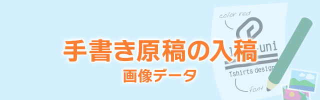 イラストレータ・フォトショップ・手書きの原稿・画像など入稿できます。