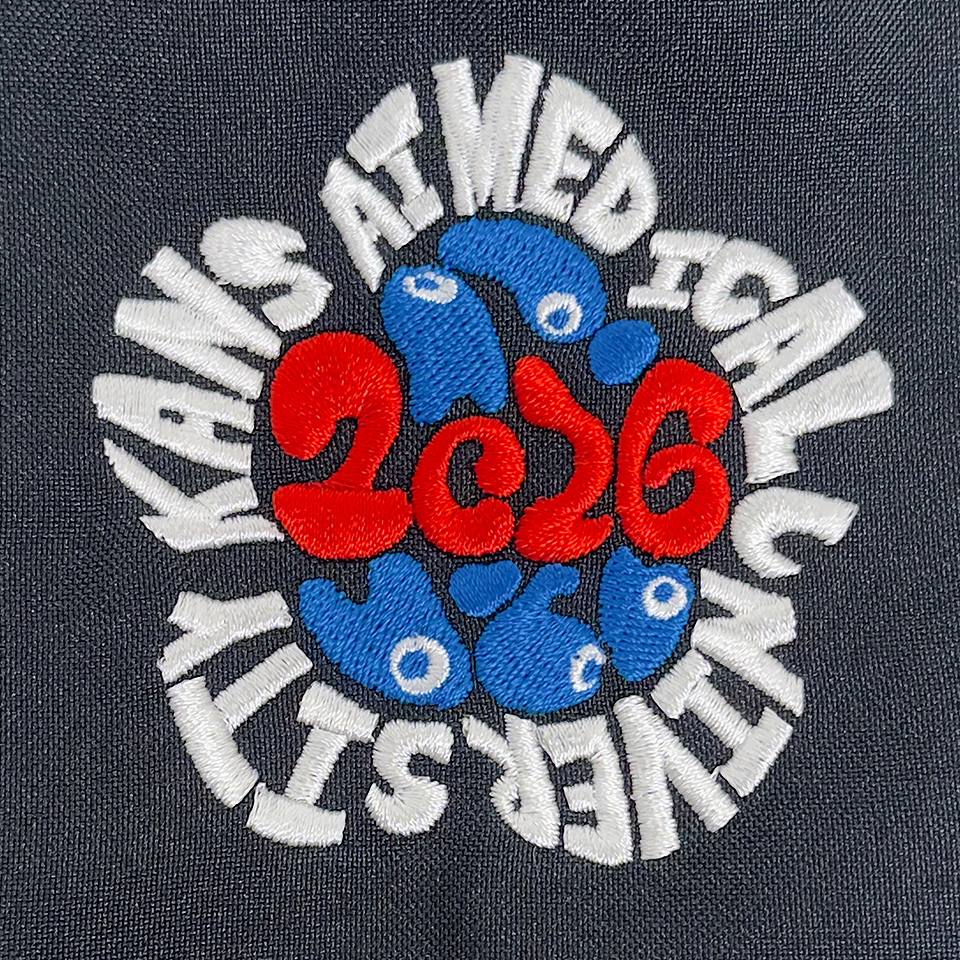 具体的には、大学のマーク、校章、ロゴを使用したデザインや、ハートラちゃんやゆるキャラのデザイン、病院のロゴ、ドクターヘリや心電図、聴診器と言った医療関連のイラストなど、かなりの数の既存型を保有しておりますので、既存のものを使用し年号部分の一部のみ修正することでコストを抑えた刺繍をご提案致します。