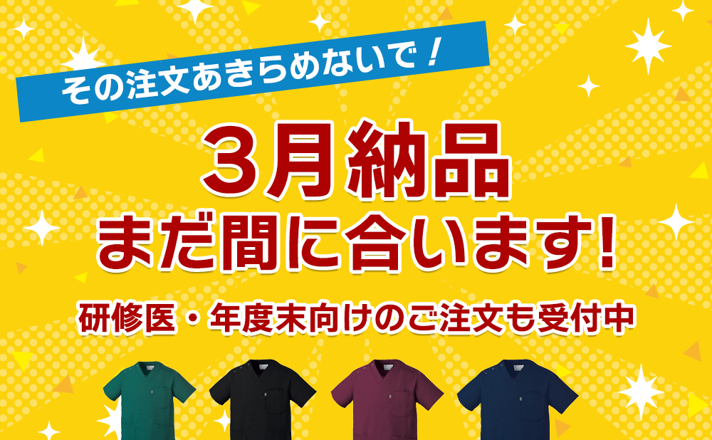 【3月納品まだ間に合います】研修医スクラブ・年度末納品分ご注文受付中!