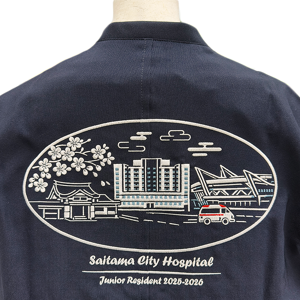 スクラブや医療用ウェアへの高品質なオリジナル刺繍ならアルファユニ
