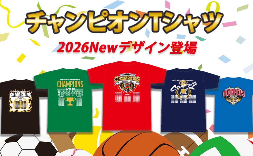 皆さま、大変お待たせいたしました! 多くのチームから熱いご要望をいただいておりました「チャンピオンTシャツ」の2026年NEWデザインがついに完成しました!共に流した汗、苦しい練習を乗り越えた先に掴んだ勝利。 その「最高の瞬間」を、ただの思い出で終わらせるのはもったいない。頂点に立ったチームだけが着ることを許される、誇り高き「勝利の証」を自分たちの手で作りましょう!2026年NEWデザイン登場!今年のデザインは、強さと絆を象徴する全7バリエーション。 中央には輝くトロフィーやエンブレム、そしてチーム全員の名前を刻むこともできます。 まさに世界に一つだけのオリジナルTシャツです。クリックすると画...