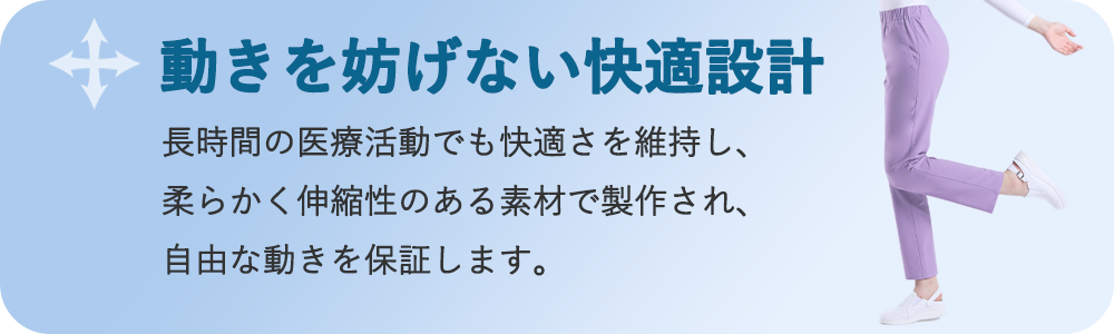 長時間の医療活動における「心地よい動き」を徹底研究し、日々のお手入れが楽な「優れた管理性」を徹底追求。