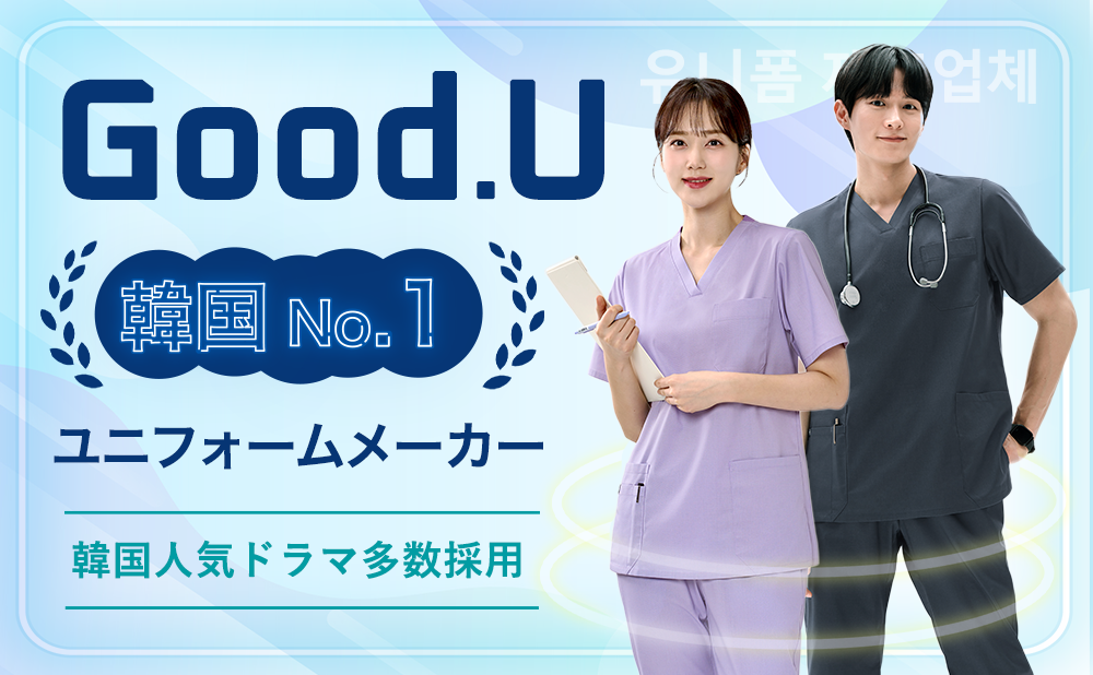 韓国No.1ユニフォームブランド「Good.U」が、伸縮性と吸汗速乾性を兼ね備えた独自の先端機能素材により、 医療スタッフのプロフェッショナルなパフォーマンスを極大化します。
