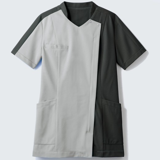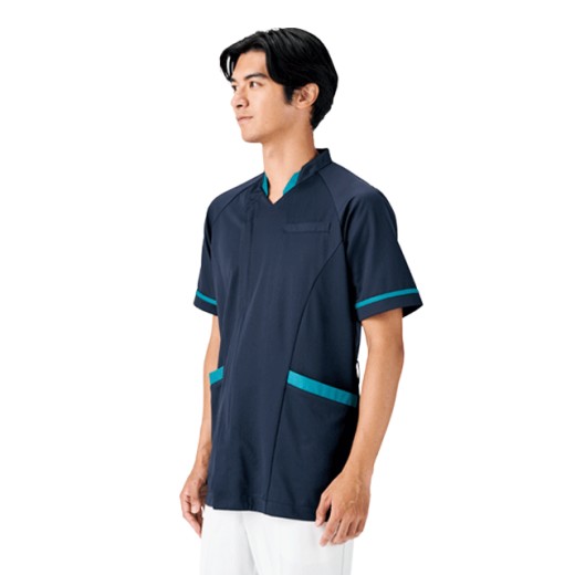 ストレスフリーな着心地、ハーフラグラン仕様の男女兼用スクラブ。