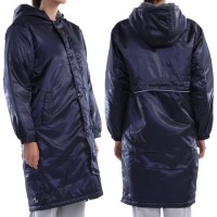冬のスポーツチームウェアとしても、屋外のイベントにも最適なセミロングベンチコートです。