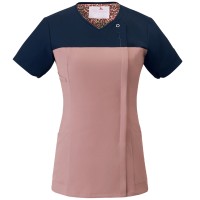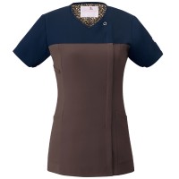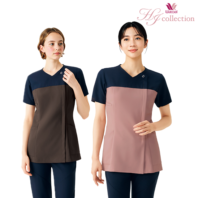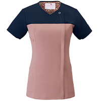 胸元に濃いカラーをあしらい、気になる汚れを目立たなくしているので、心地よく働けます。