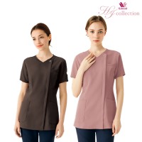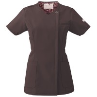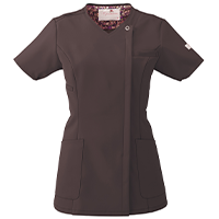 FOLK独自に考案した、かぶらず、「羽織って着る」スクラブ。着脱がスムーズ!着脱時の化粧の付着や髪の乱れが防げるのが魅力。 ワコールとフォークが共同開発した女性のためのスクラブで、女性ならではの美しいラインを強調するため、ウエストまわりを絞り、すっきりとしたシルエットを演出。