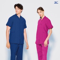 着脱が楽なフロントファスナータイプのスクラブ。