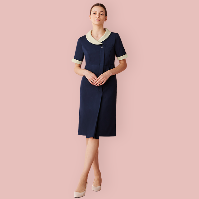 フロントファスナー仕様で着脱しやすく上品なたたずまいのワンピース