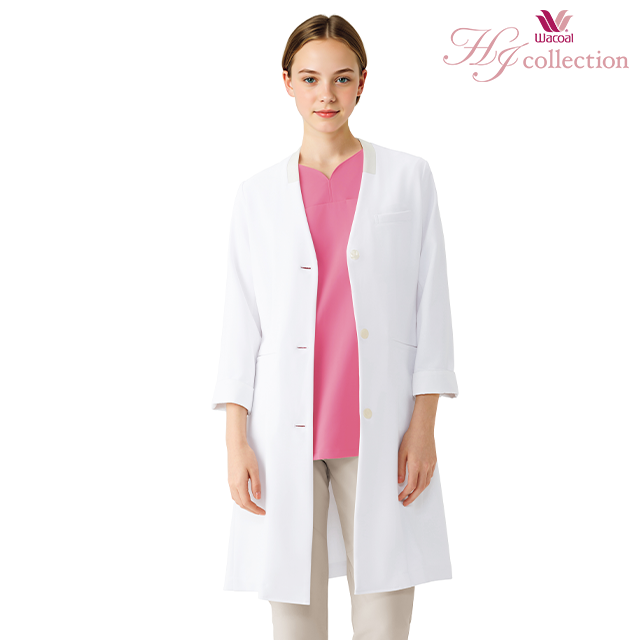 凛としたプロフェッショナルに。デコルテと顔まわりが映えるノーカラーコート