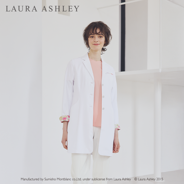 清潔感と洗練された印象を与え、医療現場でも上品に輝ける一着です。