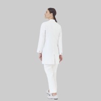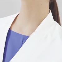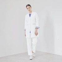 清潔感と洗練された印象を与え、医療現場でも上品に輝けるドクターコートです。