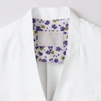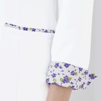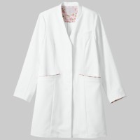 花柄裏地が華やかさを添える、ノーカラーショート丈ドクターコート