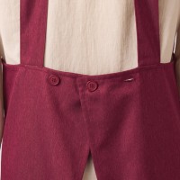 ウエストはリボンより手軽なボタン式で2段階調節が可能。幅広の背面肩ひもが、動きによるズレを軽減します。