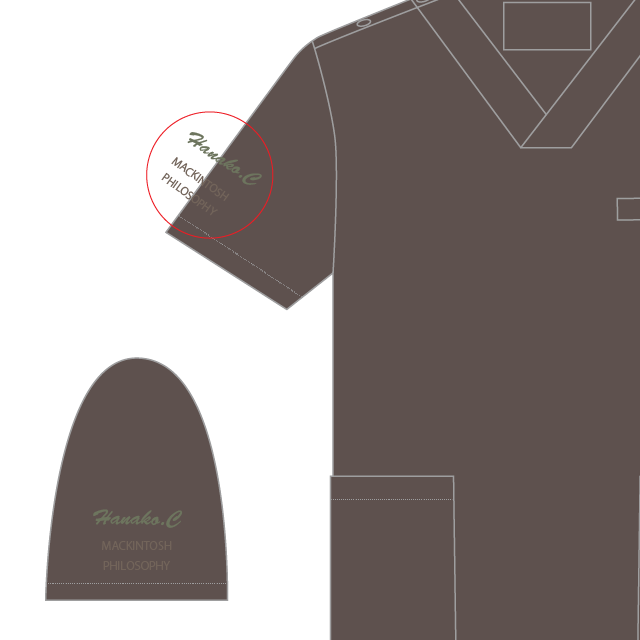 右袖に"MACKINTOSH PHILOSOPHY"のロゴ刺繍が入っております。そのため、袖の加工はロゴの上なら、可能です。