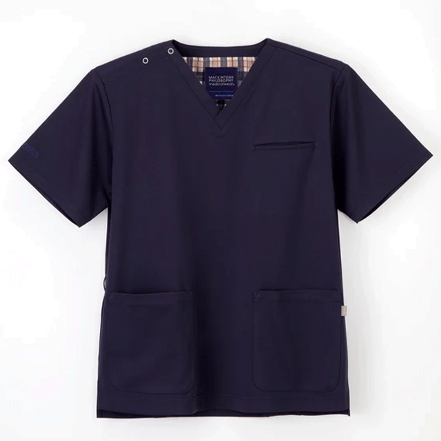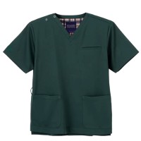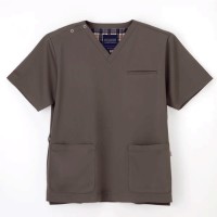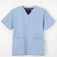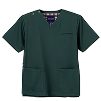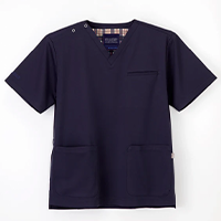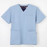 制菌・制電・吸水・防汚加工済みで、工業洗濯にも対応した高機能スクラブです。