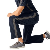 単体での着用はもちろん、同素材のスクラブと合わせることで、サイドラインが肩から裾まで一直線に繋がるよう計算された遊び心あふれるデザインが魅力。