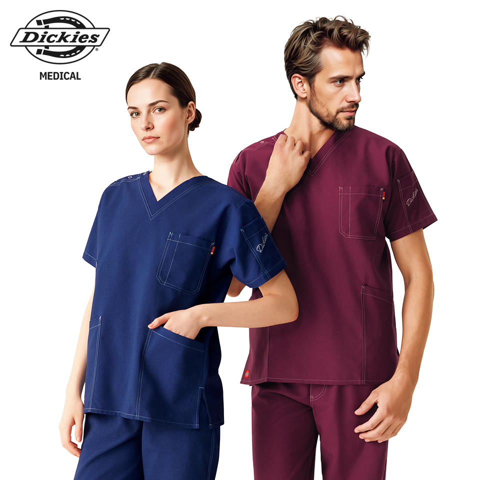 アメリカンサイズではなく、日本人の体型にフィットするジャストフィットサイズのスクラブだからサイズ感も安心。男女で着られるのでチームスクラブ製作にもぴったりです。吸汗速乾性・洗濯性・ストレッチ性に優れた素材を使用。ラフな着心地と動きやすさを追及し、ハードな現場でも快適に動けます。個人買い・チームウェアにもおすすめのディッキーズスクラブです。