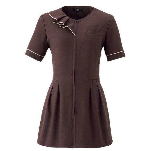 ショート丈・ジップアップ仕様の爽やかな半袖ドクターコート。