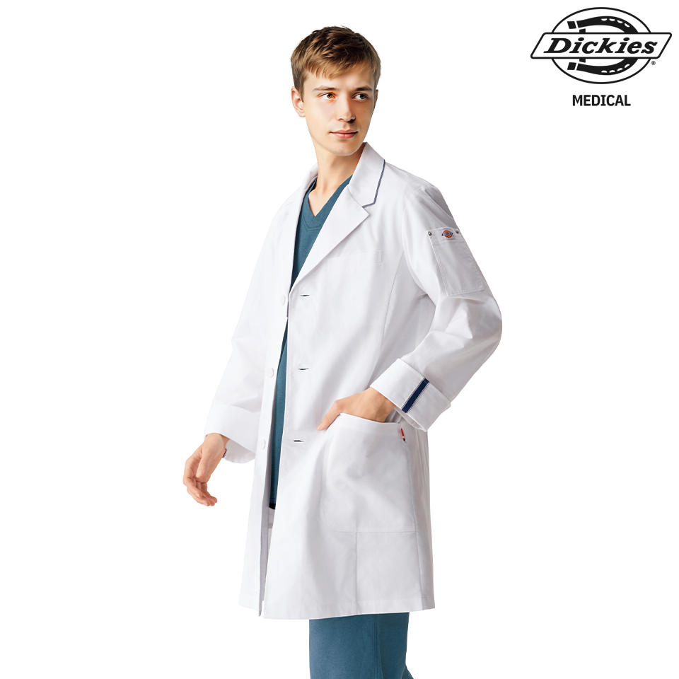 襟元と袖口のデニム地ラインがディッキーズらしいカジュアルなドクターコートです。