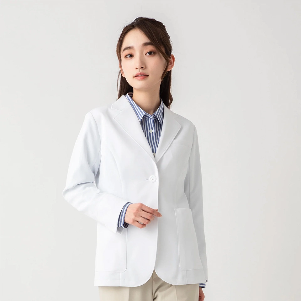 また、現在の主流であるスクラブの上から羽織るアウターとして、バランス良くスッキリと着こなせる点も魅力です。従来の長い白衣が与えがちだった威圧感を抑え、普段着のスーツに近い感覚で患者様に親しみやすさを感じさせる効果もあります。