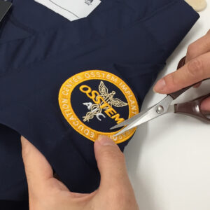 近年、スクラブの背中刺繍が人気を集めています。存在感あふれる迫力のデザインで、チームの個性を際立たせます。もちろん袖や胸元にも高品質な刺繍加工が可能です。