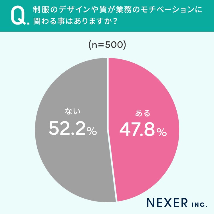 47.8%と約半数の方が、制服のデザインや質が業務のモチベーションに関わる事が「ある」と回答しています。