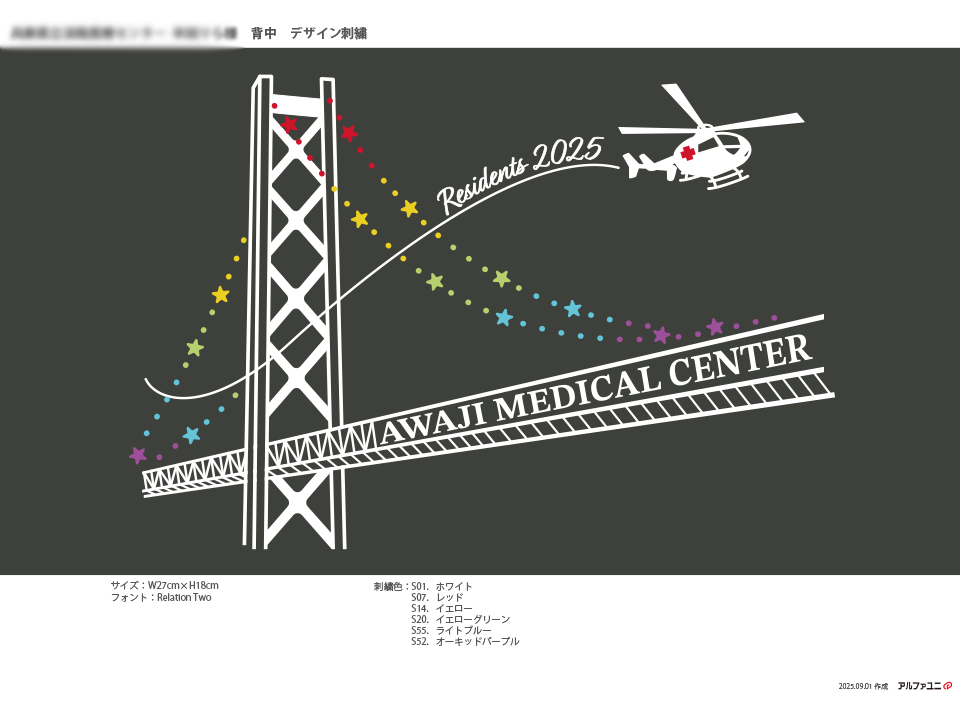 兵庫県立淡路医療センター研修医様、刺繡デザインのご紹介です。
