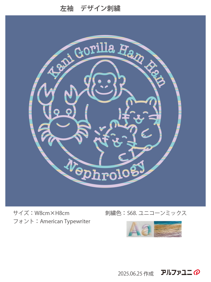 この刺繍、実は「ユニコーンミックス」というミックスカラー(特色)を使っているんです。