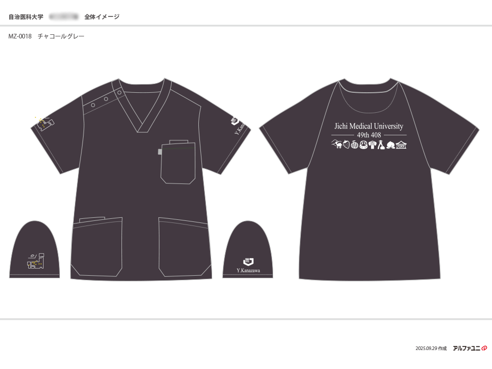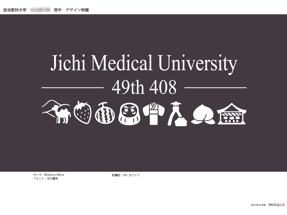 自治医科大学医学生様、刺繡デザインのご紹介です。