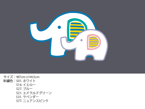 親子の象のデザイン刺繍です。