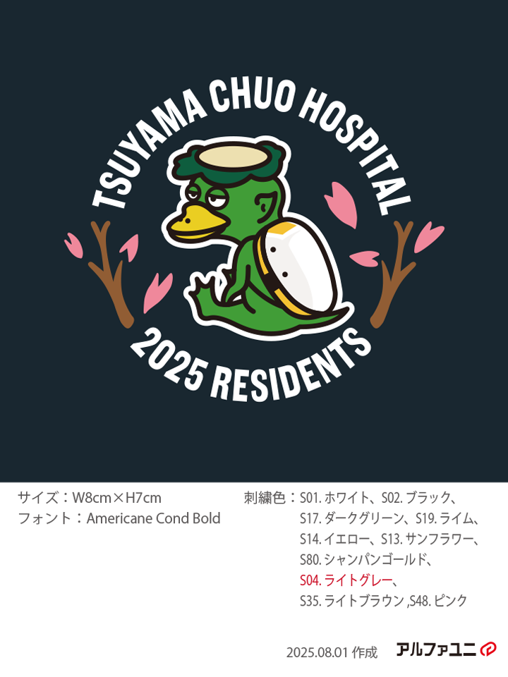 津山総合病院研修医様、刺繡デザインのご紹介です。
