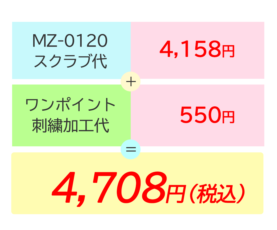 MZ-0120ストレッチスクラブにワンポイント刺繍を入れた場合