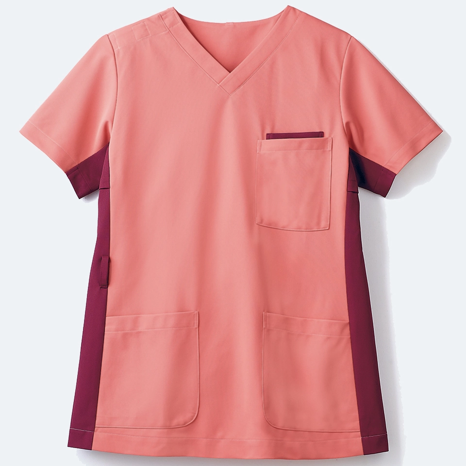 ピンク系のスクラブは、特に女性を中心としたクリニックや小児科、歯科、美容系などに人気の高いカラーです。癒しの色「ピンク」と女性ならではの”きめ細かな”サポートで、患者さんのケアはもちろん、クリニック全体の雰囲気を和ませるオススメのスクラブカラーです。