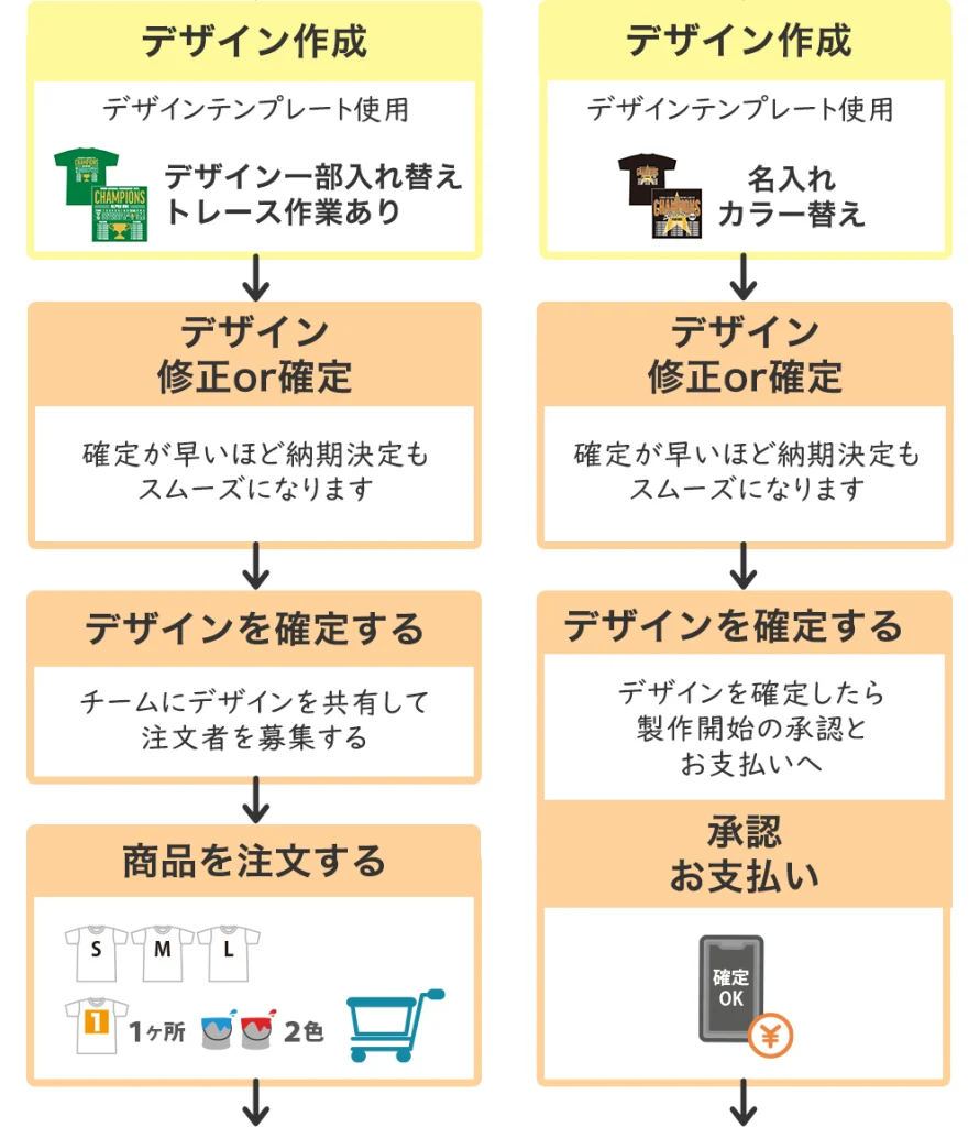 こちらは、弊社おすすめのデザインテンプレートを使用した場合のご注文の流れです。