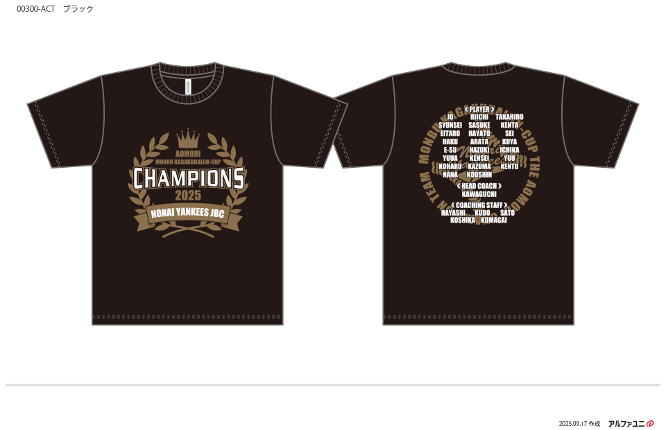 優勝オリジナルチャンピオンTシャツのご紹介です。