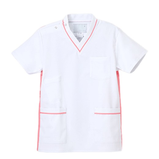 肌触りが心地よいトロピカル生地採用!両脇にスリットが入って動きやすいスクラブ。左胸にPHSポケット付き。刺繍も綺麗に入りおすすめです。